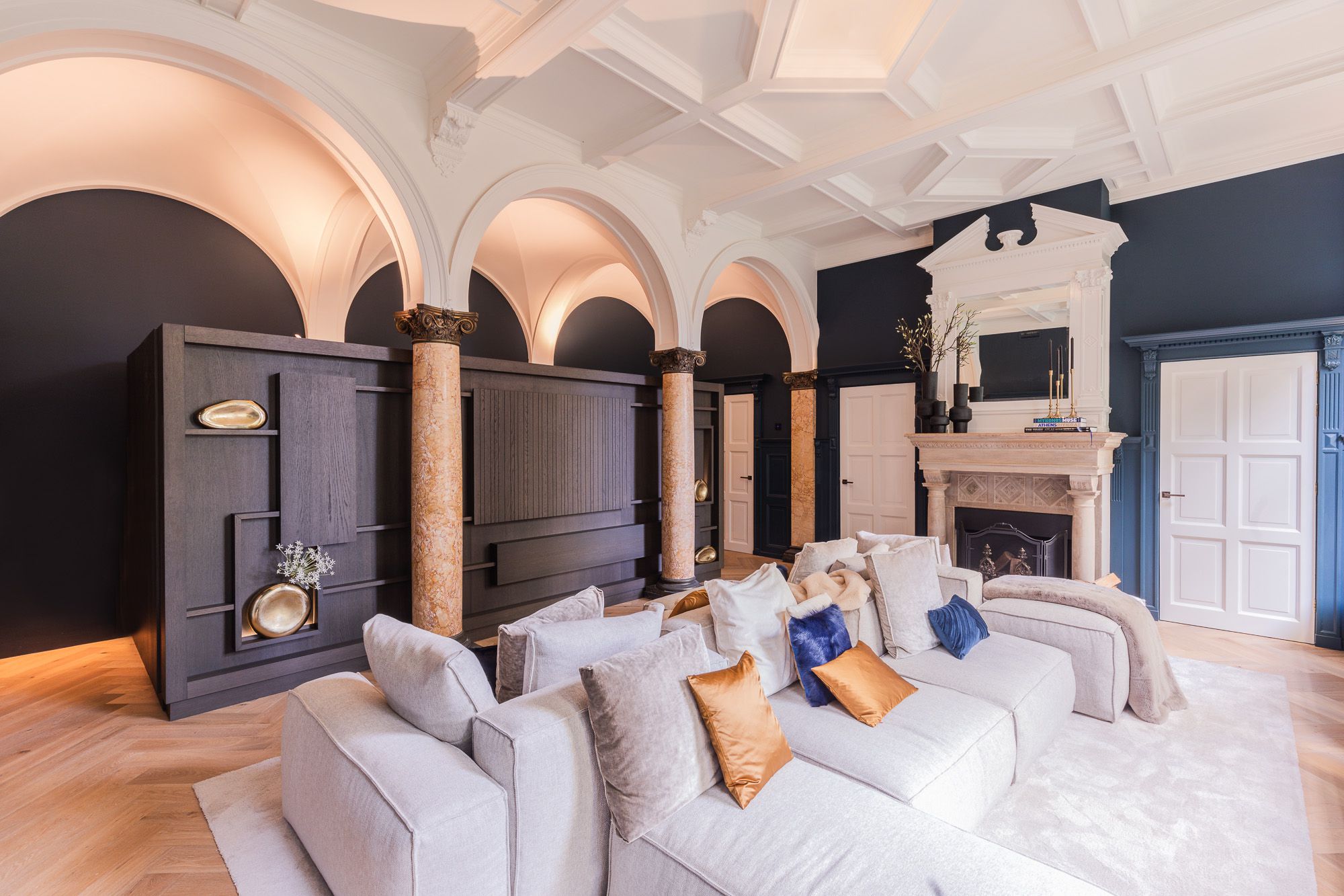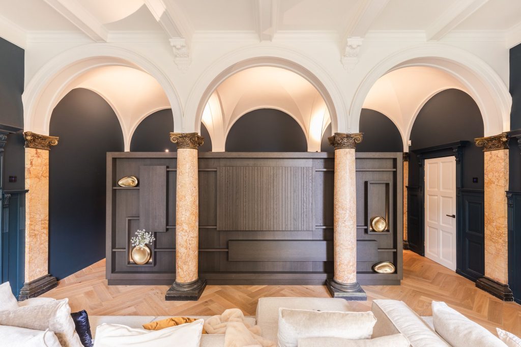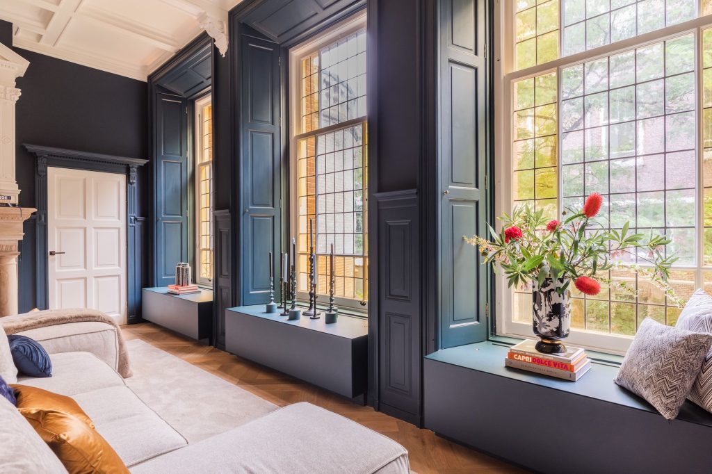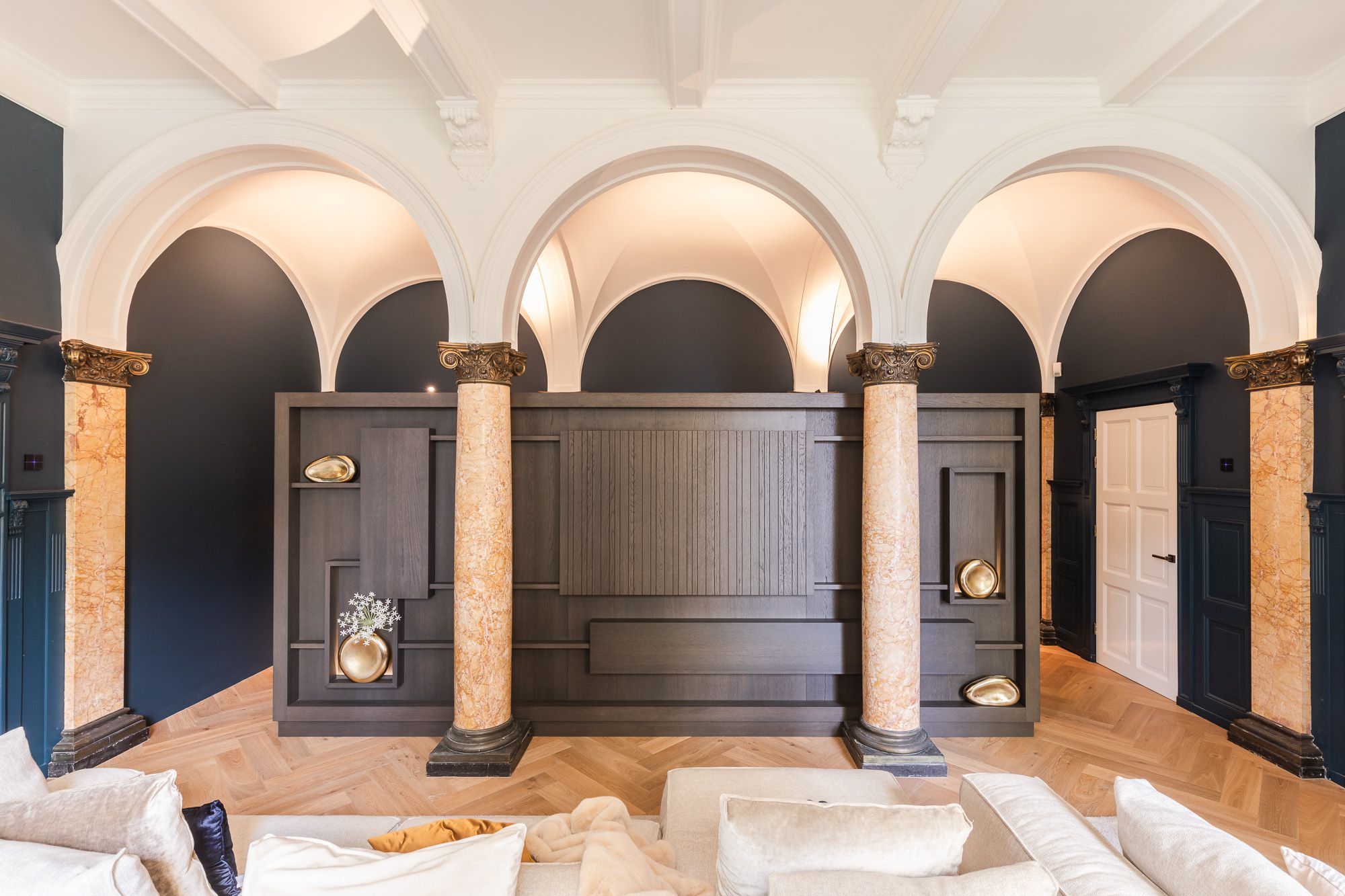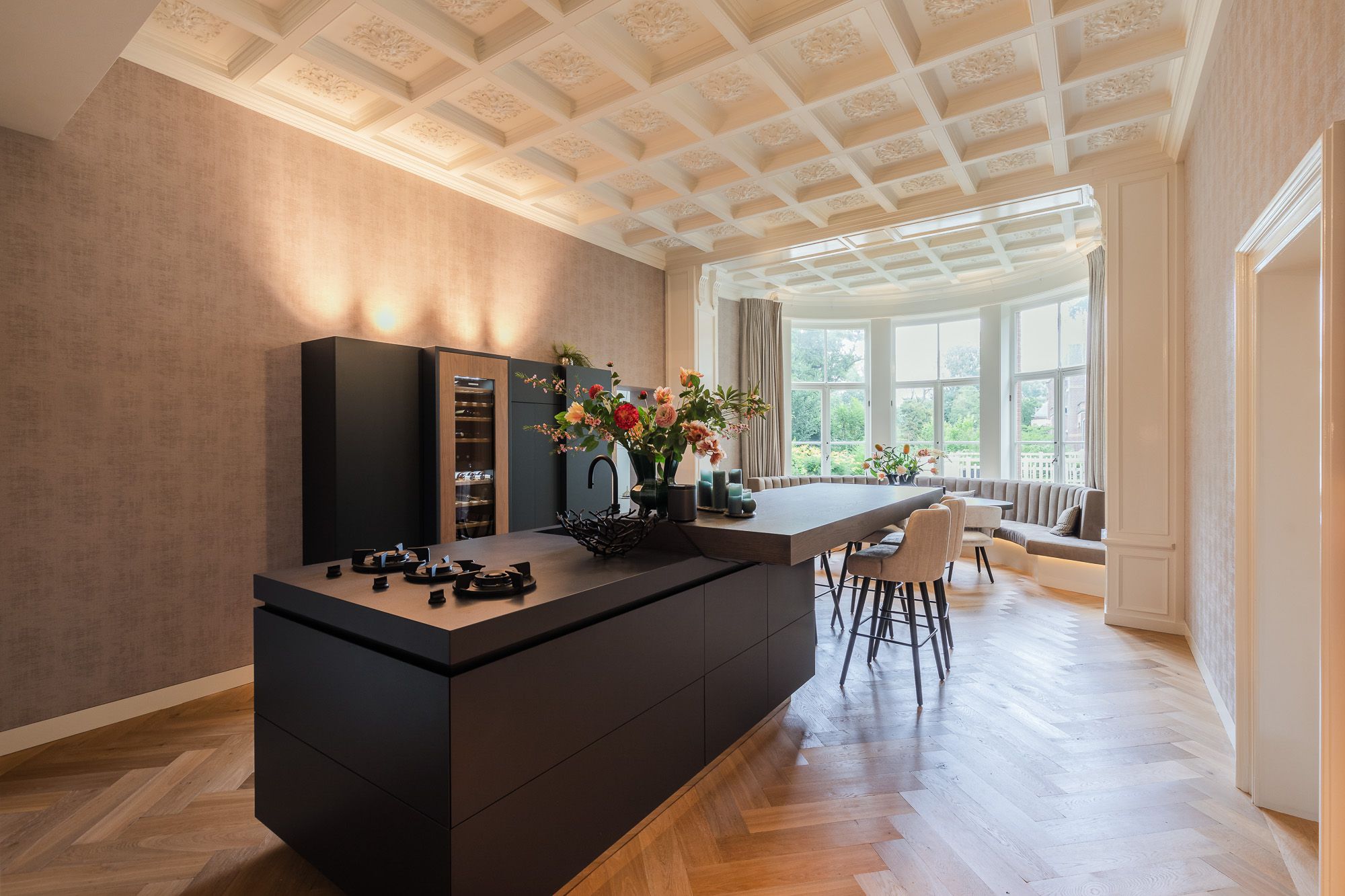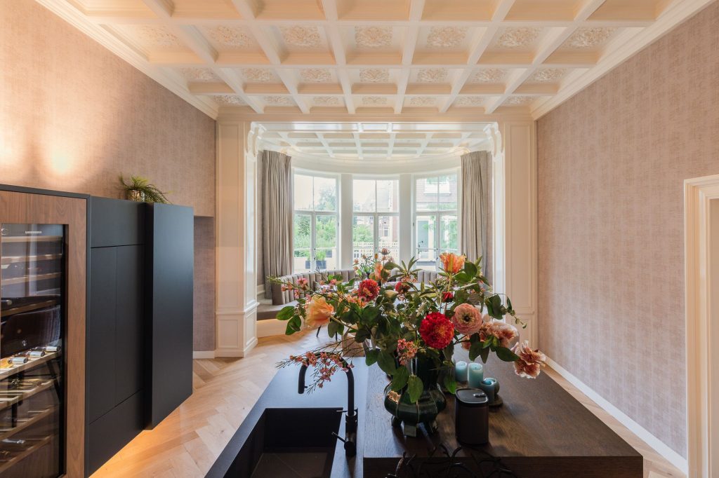 Daarnaast is er een combinatie gemaakt tussen monumentale onderdelen en een strakke eigentijdse look and feel. Zo is een deel van de woning voorzien van een strak eigentijds maatwerk interieur en is een ander deel van de woning voorzien van maatwerk interieur wat aansluit bij de monumentale uitstraling van het pand.