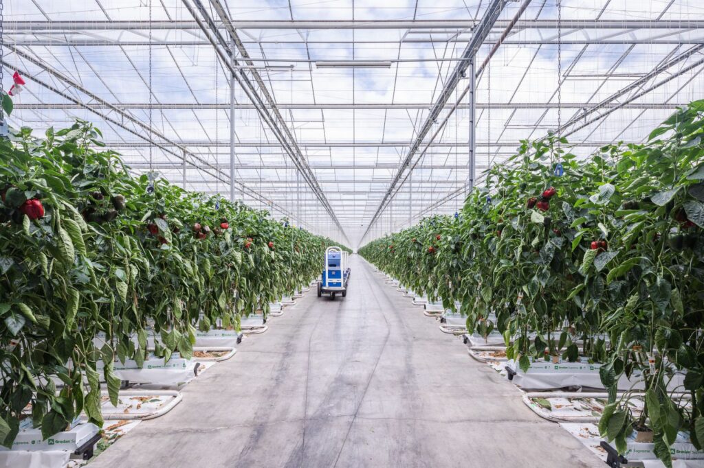 In de glazen kas is een betonpad van honderden meters lang aangelegd. Het pad loopt door de glazen kassen heen. Er rijdt op dit betonpad een geautomatiseerd treinstel met bakken rond, zodat de geoogste paprika’s op efficiënte wijze worden vervoerd. Dat treinstel transporteert de paprika’s uit de kas naar de verwerkings- en sorteerhal.